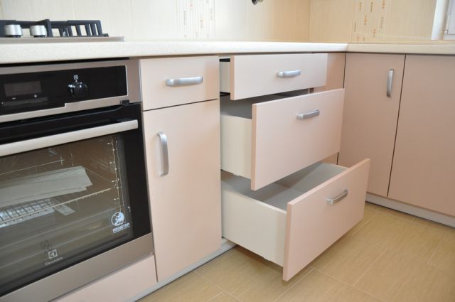 Płyta korpus: PFL / LATTEFronty dół: PFL / LATTEFronty góra: PFL / PIASKOWYBlat: FLAMENCOZawieszenia szuflad i zawiasy: Blumm, HKS